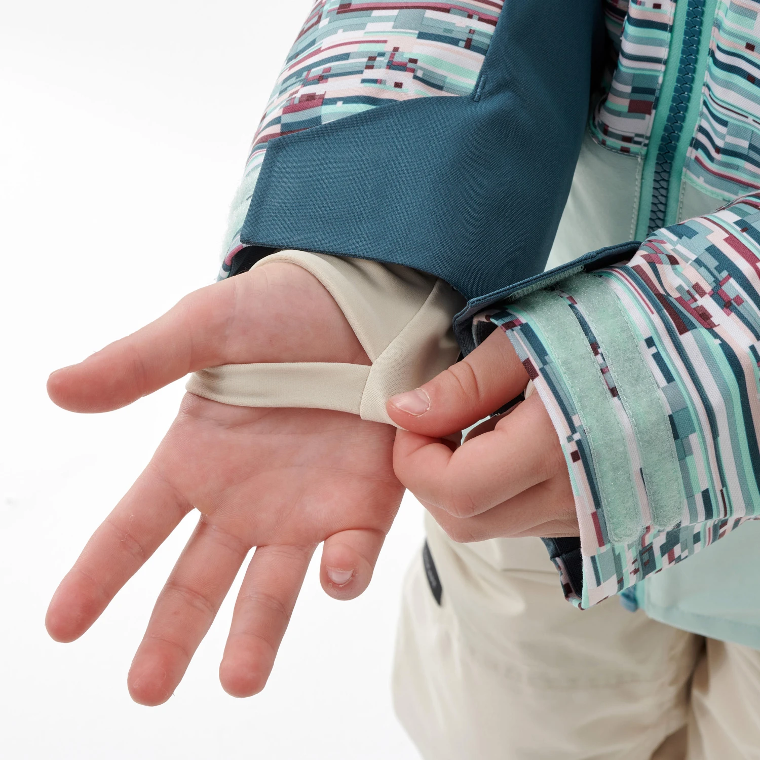 This extremely warm, waterproof jacket has ideal features for regular to intense activity. Long cut and sleeves with thumb loops keeps snow out at the wrist. Elbow and side reinforcements for greater resistance, snow skirt, pass holder