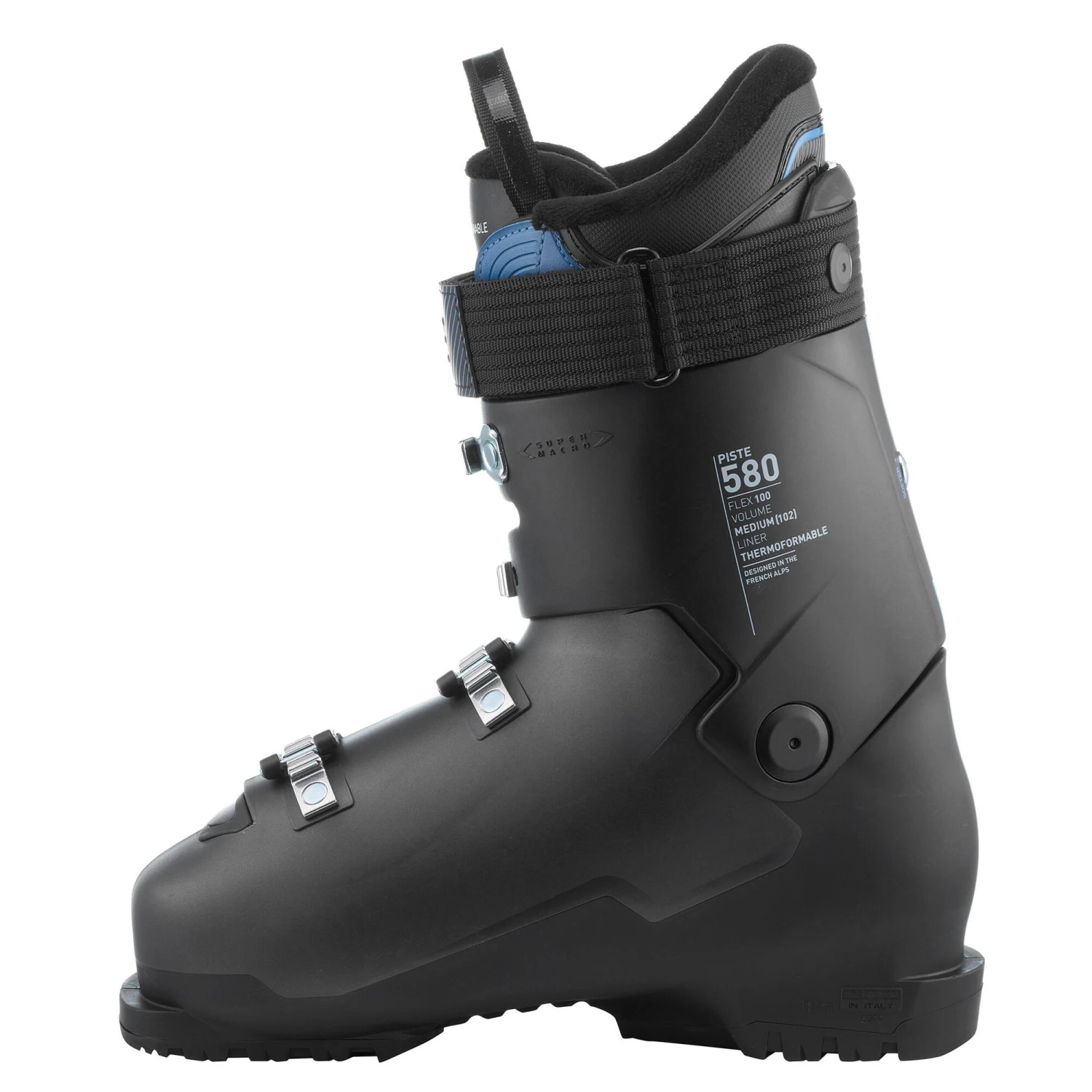 This ski boot was developed for experienced skiers looking for comfort, support, and improved performance. With its adjustable Flex (+/- rigid), the 580 will give you all the comfort you need, whether speeding or cruising down the slopes. The volume and construction provide comfort and precision.